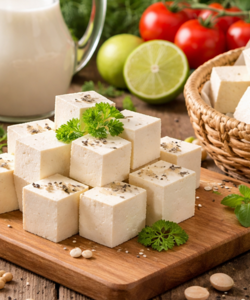 Freshly produced high-protein tofu made daily using hygienic plant-based processes for superior taste and nutrition.